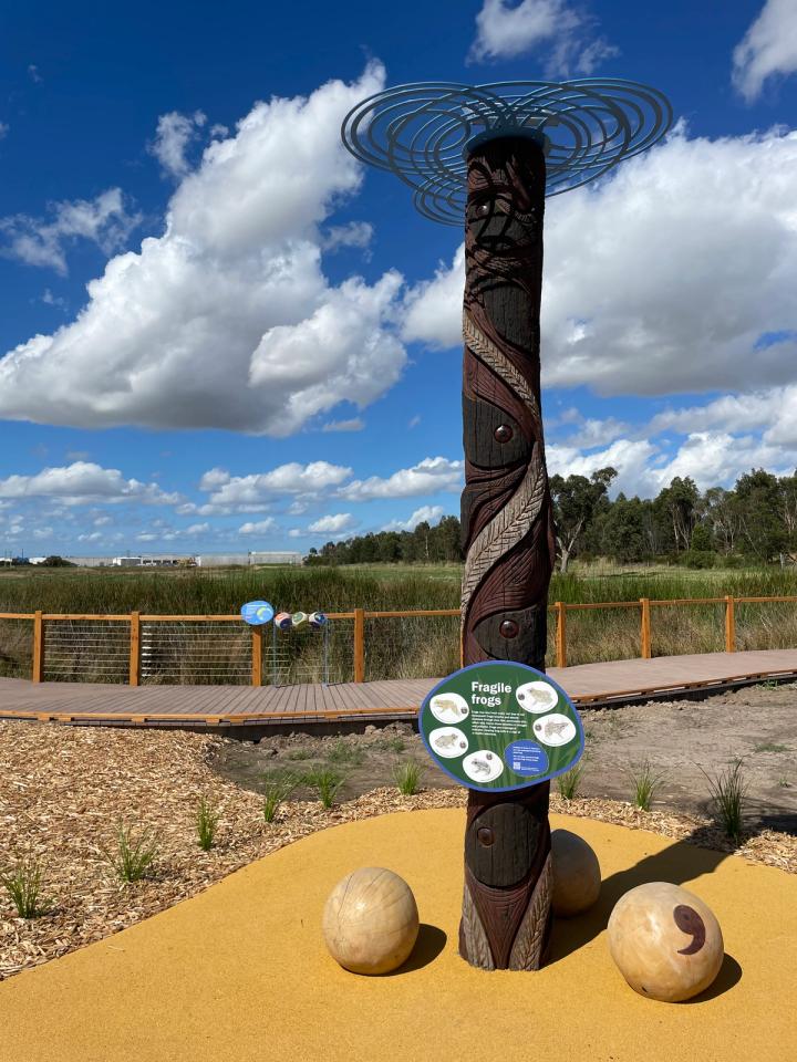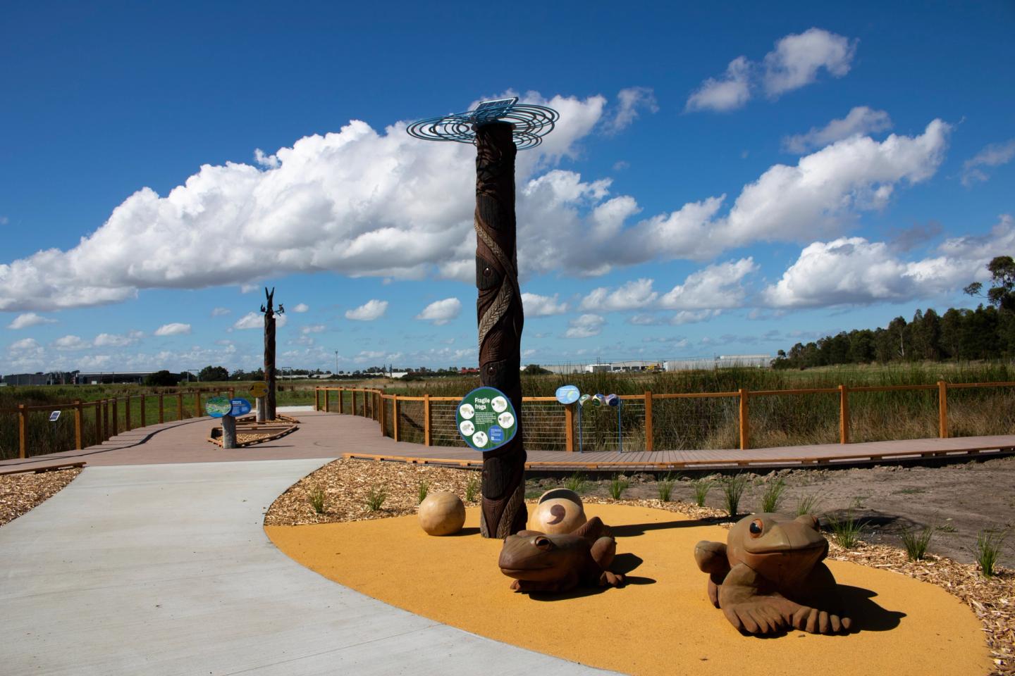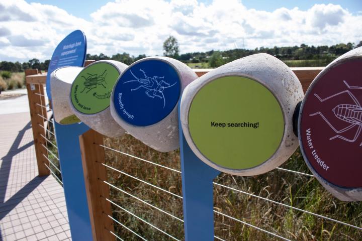 Deep Creek Reserve features playful, accessible wayfinding that guides visitors through the site, alongside rich interpretive experiences celebrating the ecology, sustainability features, and Bunurong cultural stories. Interactive elements including sculptural works, audio storytelling, and hands-on features encourage exploration, learning, and connection with the land and waterways.