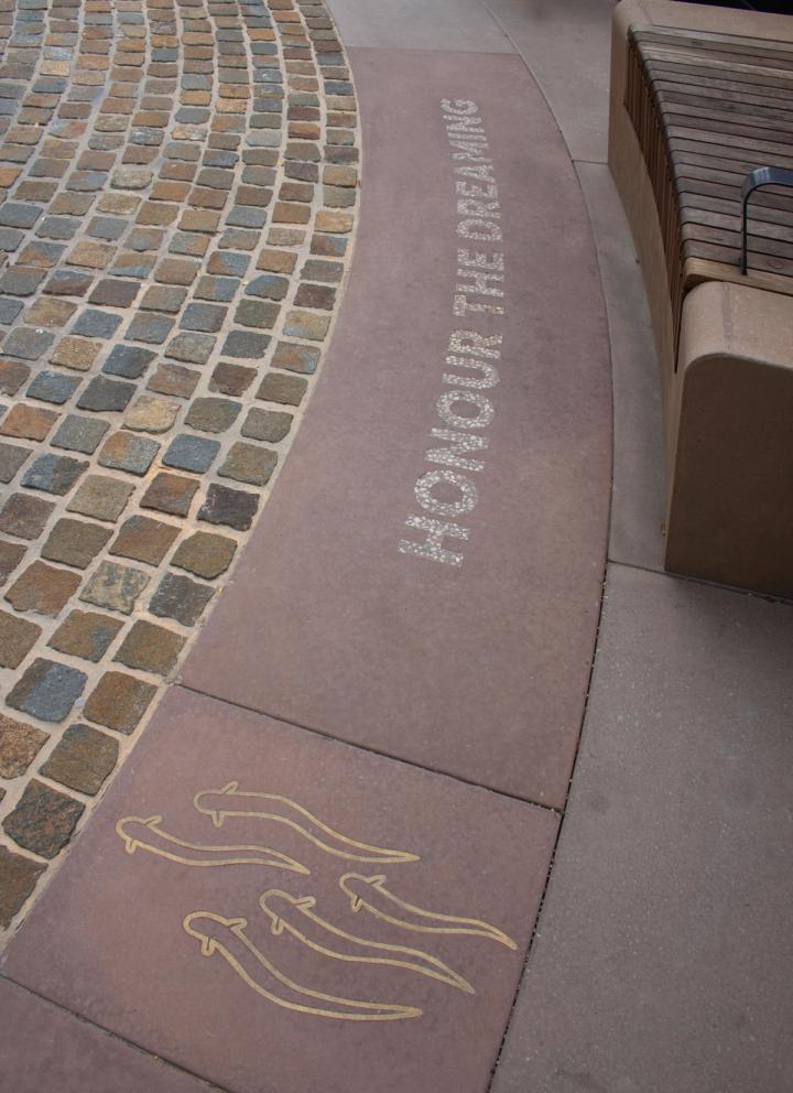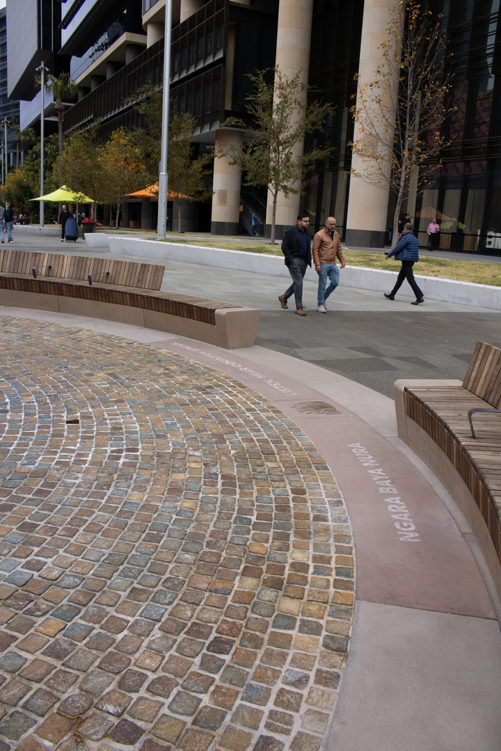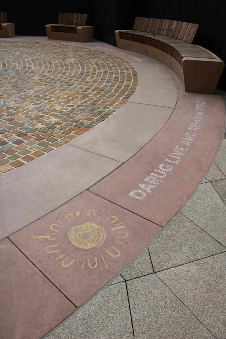 The design translates language and original Leanne Watson artwork to meet interpretive goals, reflect the Circle’s intent, and comply with all public domain safety requirements. Featuring a 10-metre porphyry circle, engraved hearth illustration, surrounding artworks, and bilingual Dharug and English text, this very special project was co-designed with Dharug Cultural Specialist Panel (DNAC and DCAC).