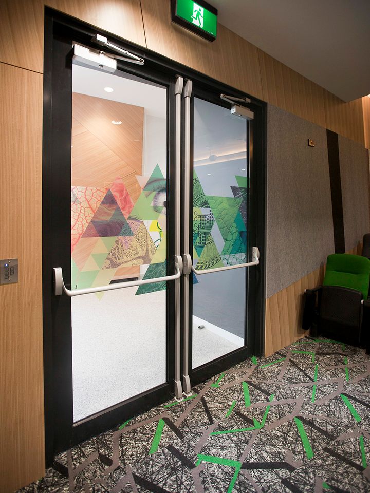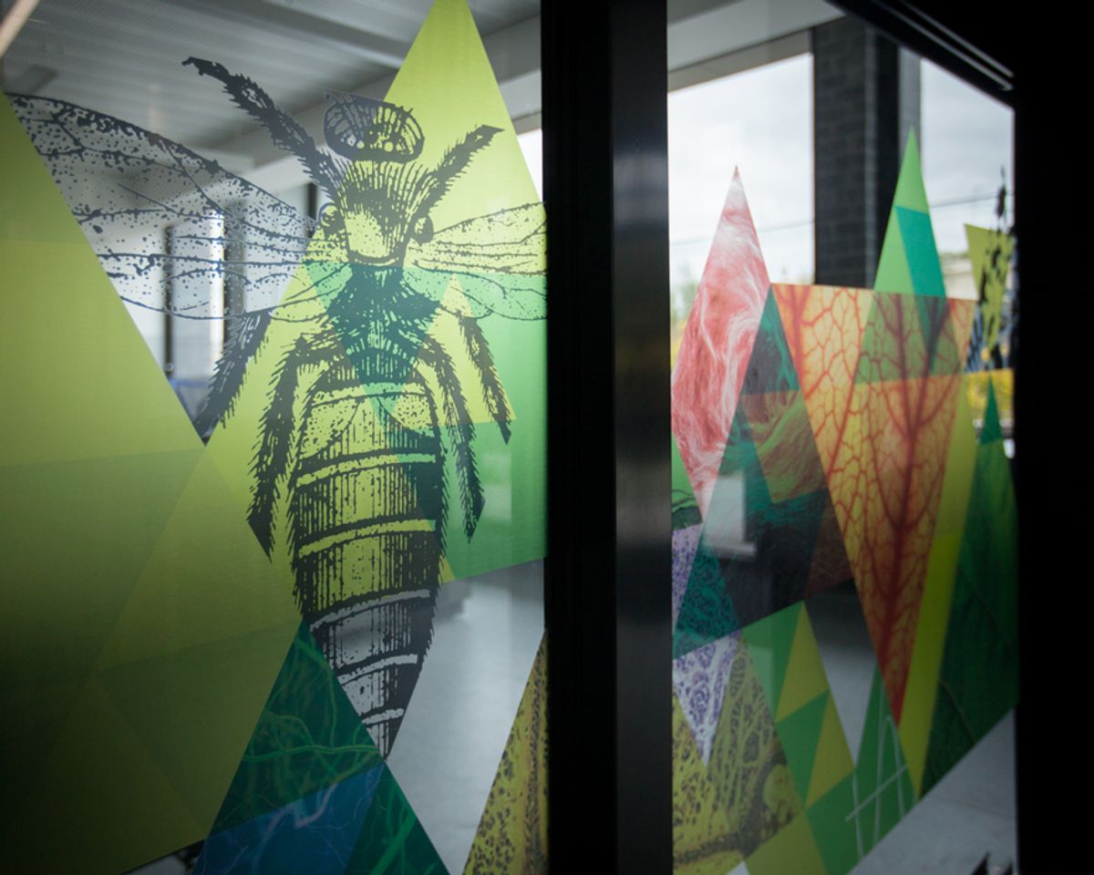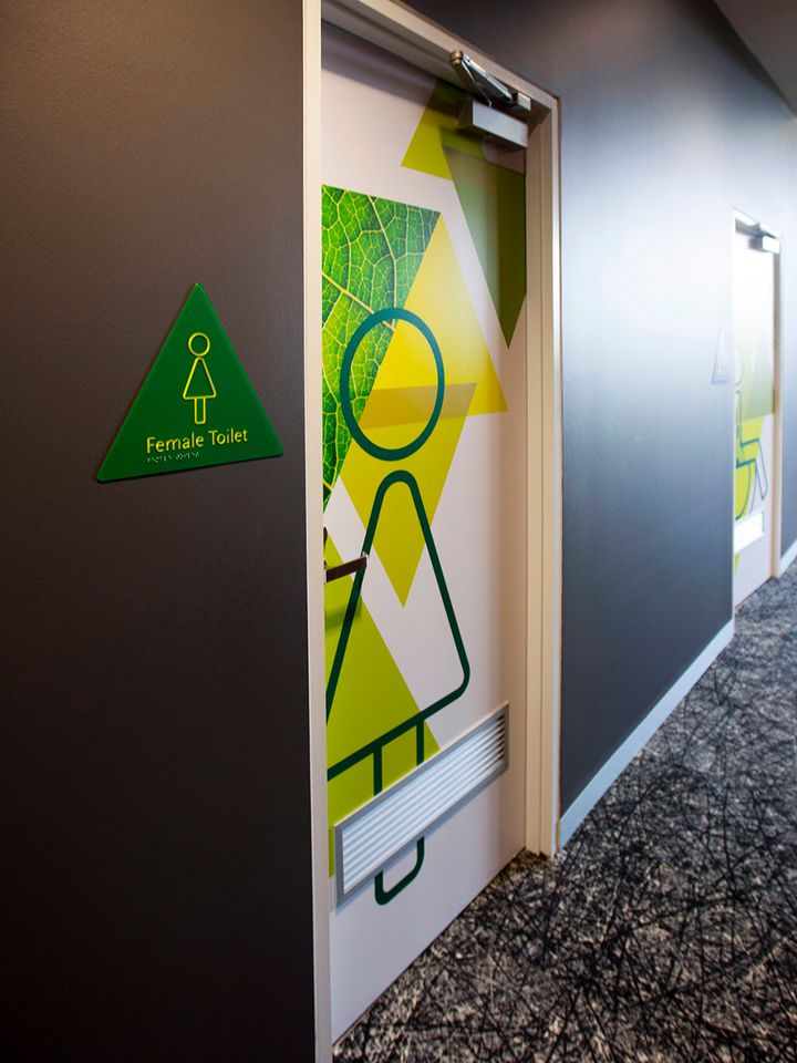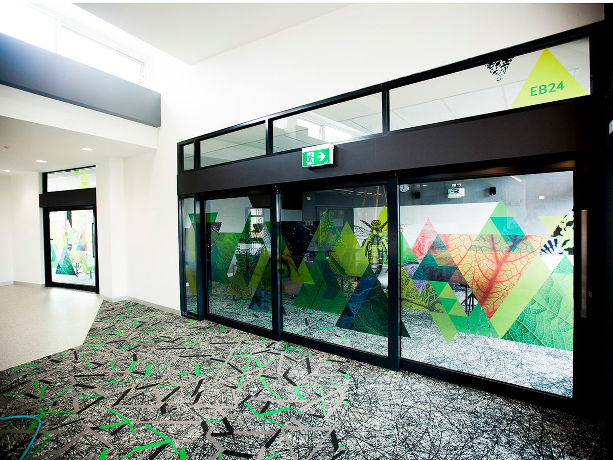 We designed a comprehensive wayfinding and environmental graphics system for the Elizabeth Blackburn School of Sciences. Scientific imagery anchors the visual identity, while integrated directional signage supports intuitive movement through the space.
