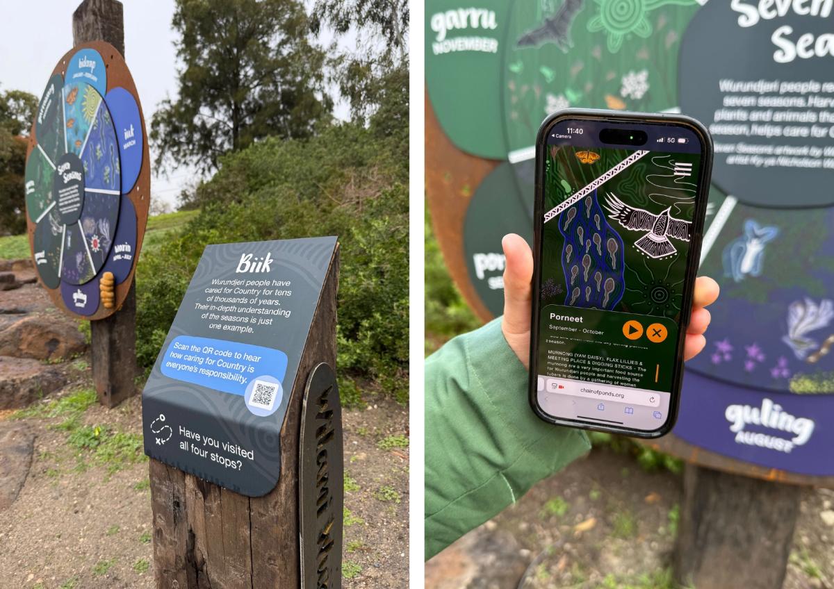 Through a thoughtful blend of signage, artwork, and digital media, the trail invites visitors to engage with Wurundjeri culture and history. Guided by the voices of Elders and knowledge holders, it encourages deeper understanding, connection, and care for Country.
